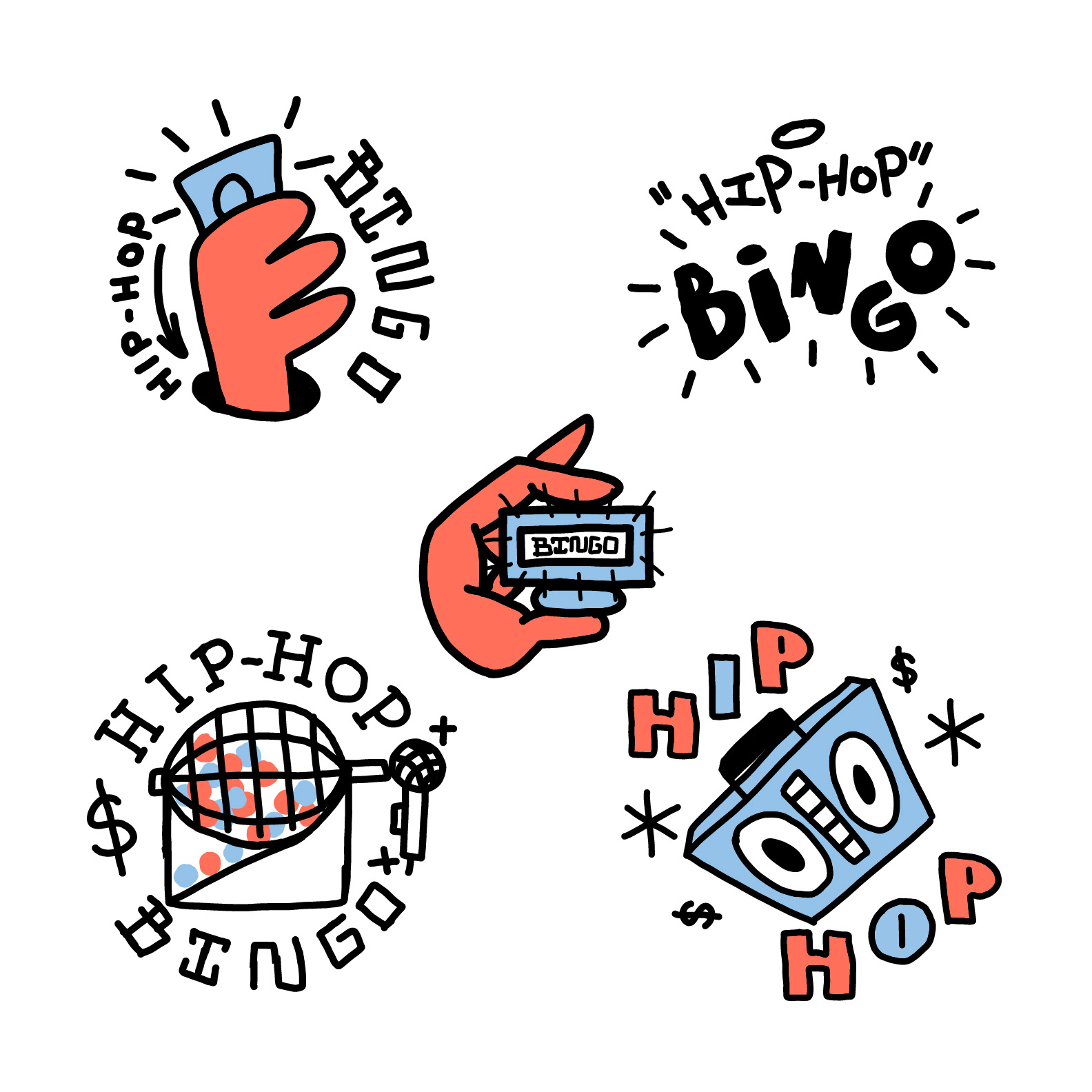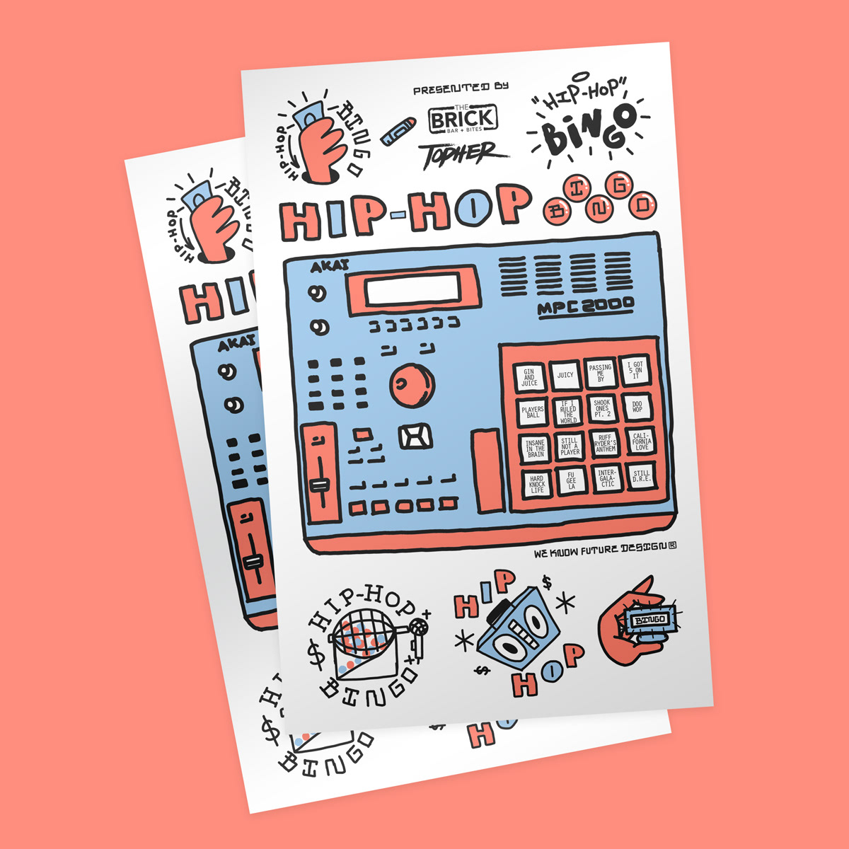 Illustration and Design for Hip-Hop Bingo, a Hip-Hop themed bingo night at Brick Bar + Bites.