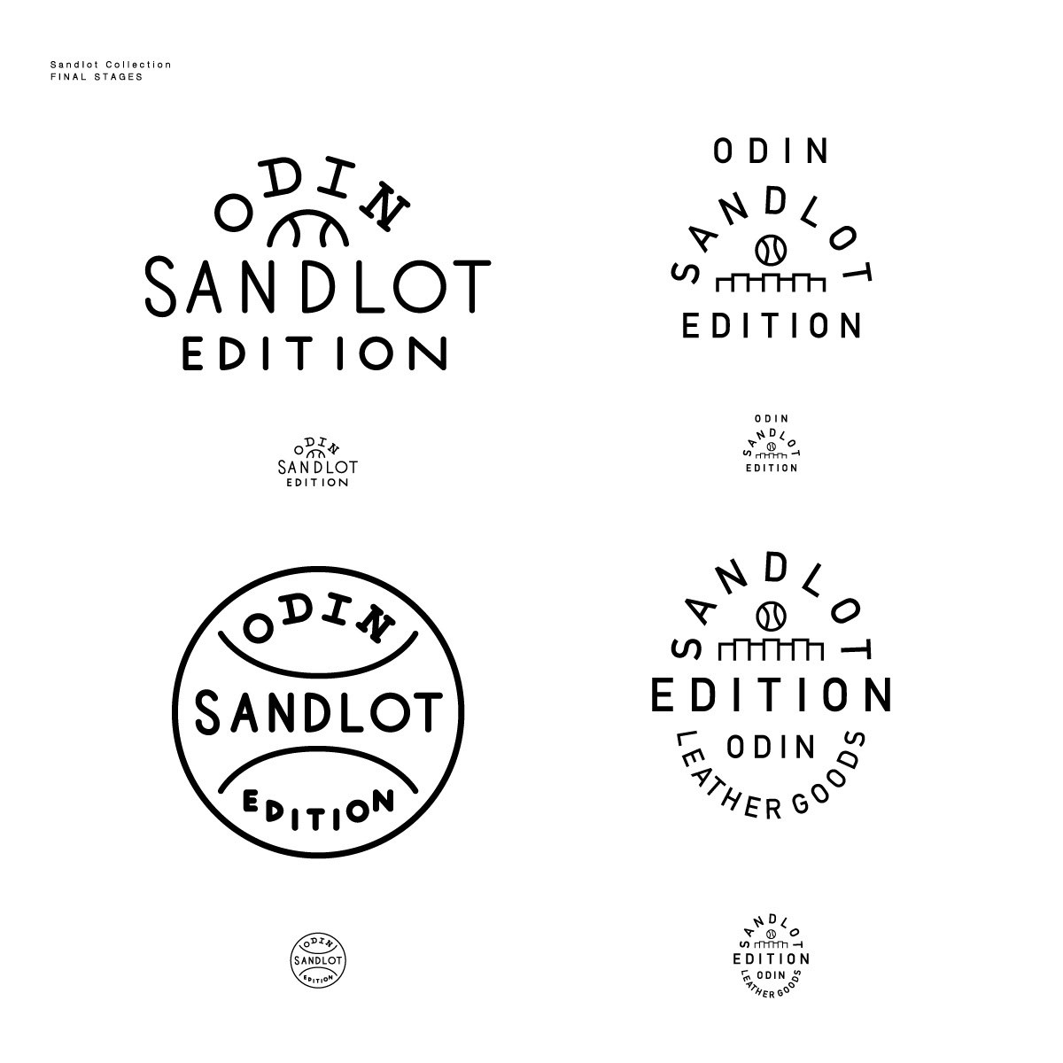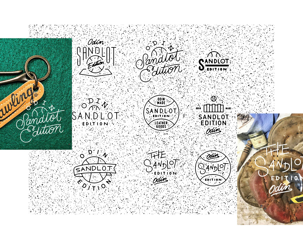 Badges and wordmarks developed for Odin Leather Goods Sandlot Edition One-of-a-kind accessories created from recycled and vintage baseball gloves.
